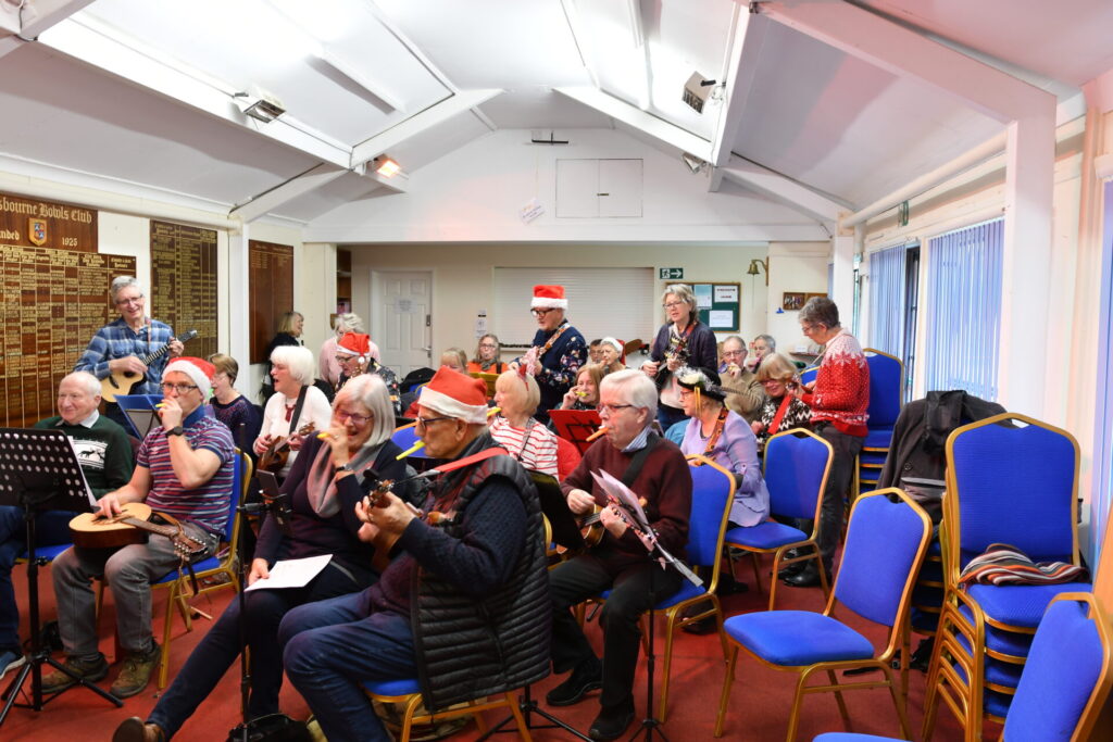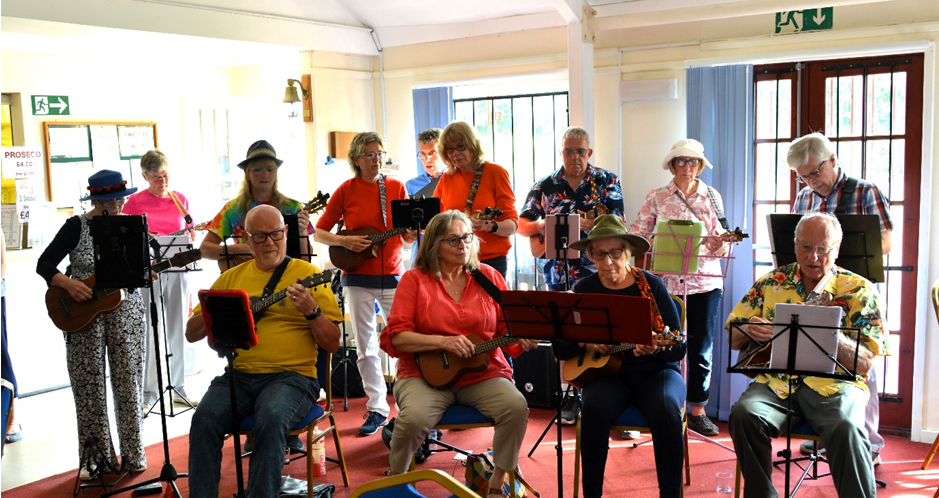 We meet together weekly to play and practise ukulele playing together. We started in 2023, picked a name, have grown rapidly in number and we have own teacher who thinks we are progressing very well! We are a friendly supportive group and members are encouraged to develop their skills at their own rate.. We have also started playing some local gigs which we all enjoy.